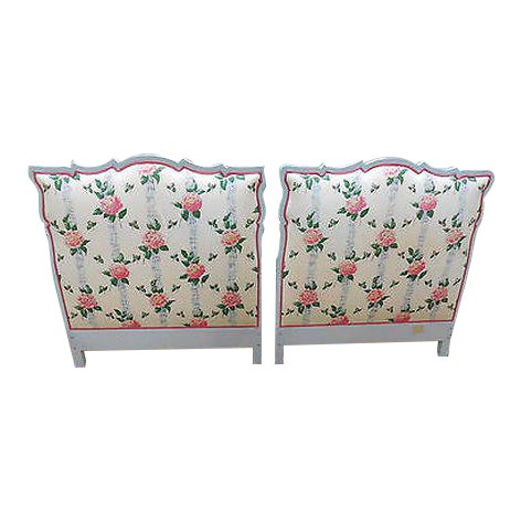 Custom Country French Style Pair Of Painted And Upholstered Twin Size Headboards
